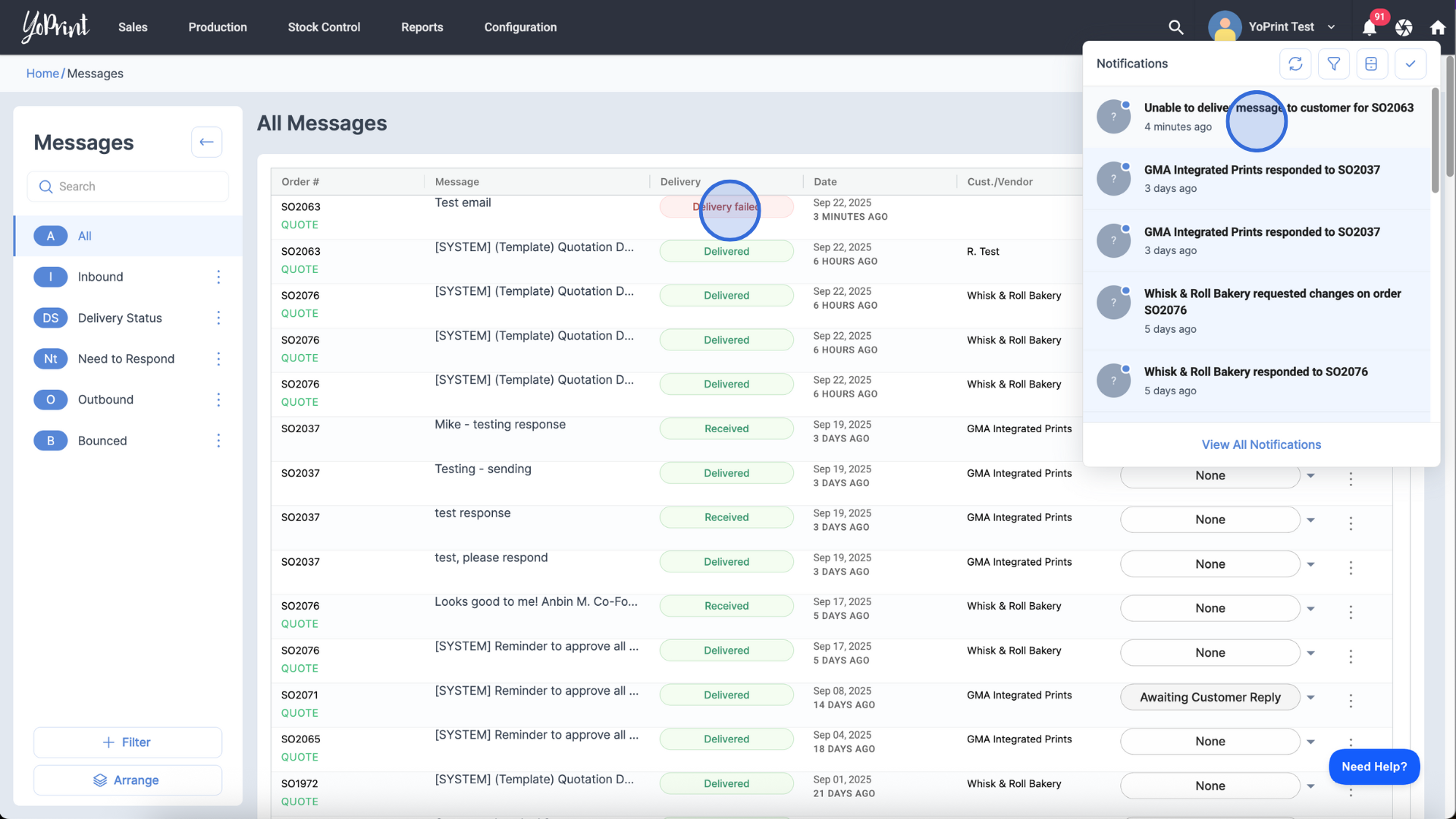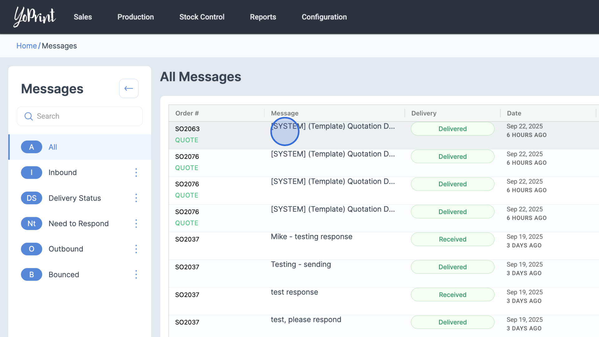 Navigate to https://app.yoprint.com/message and double-click on any messages you would like to reply to.
