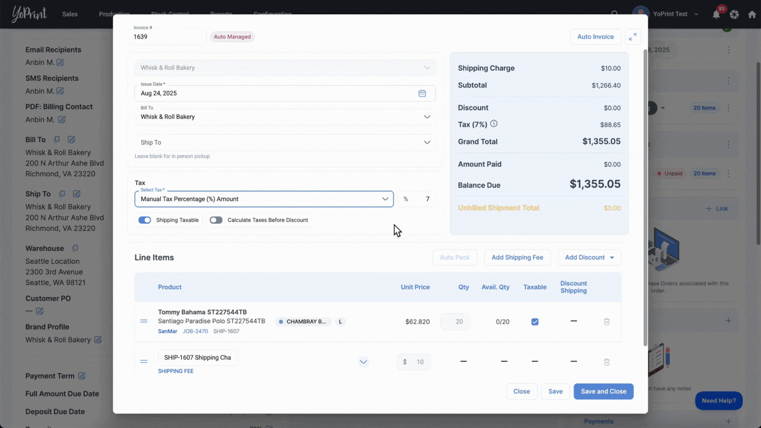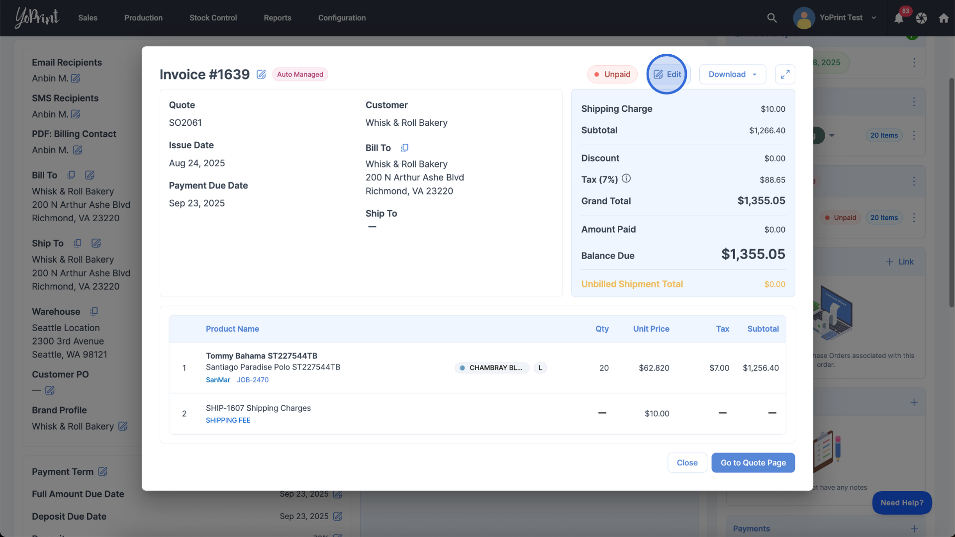 In YoPrint, you may need to update or adjust the tax in an order due to customer exemptions, incorrect tax settings, or changes in billing details. Follow the steps below to edit tax in an existing Sales Order or Quote.