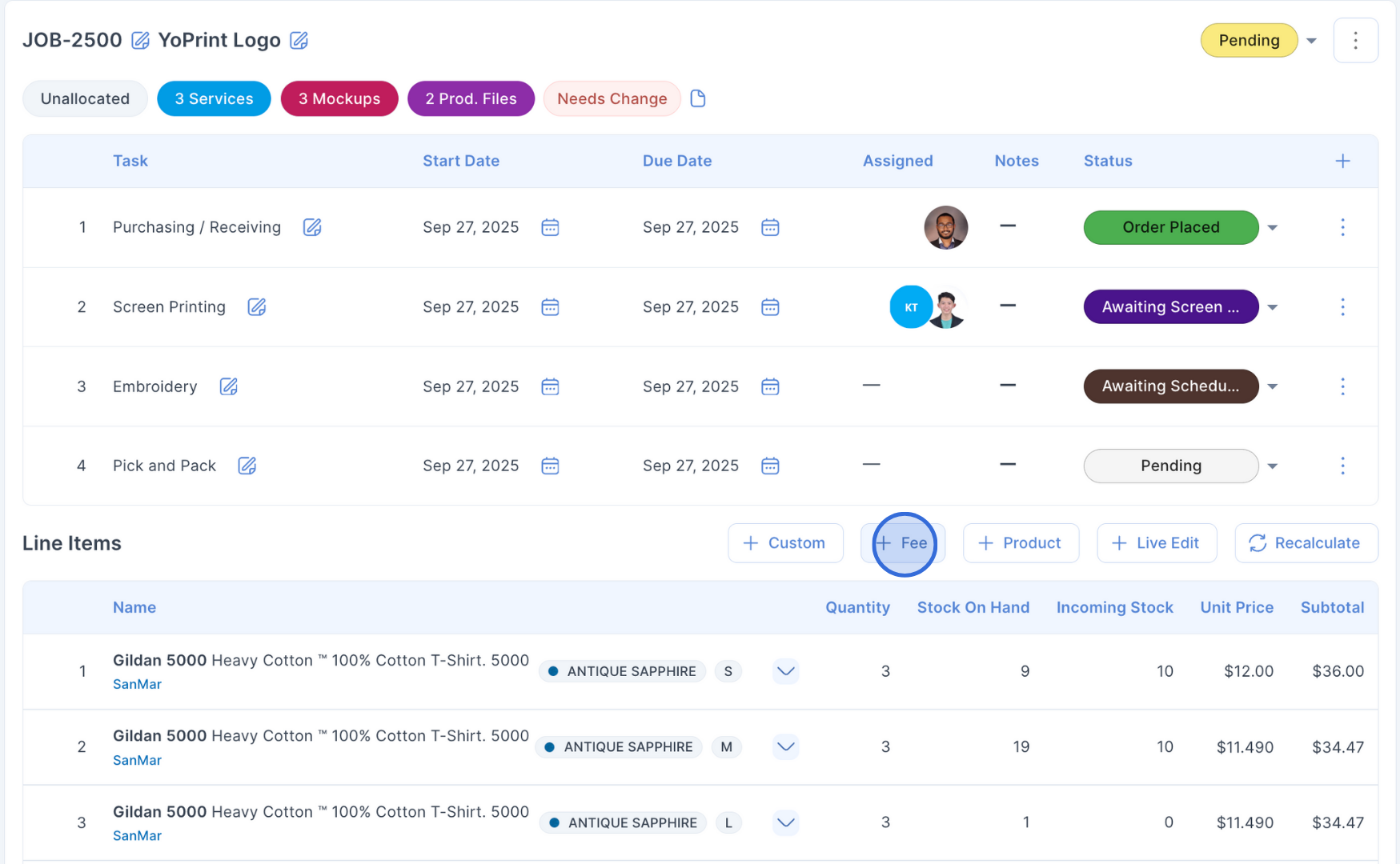 YoPrint gives you flexibility in how you apply setup fees, depending on whether you want them visible as separate charges or included in the unit price.