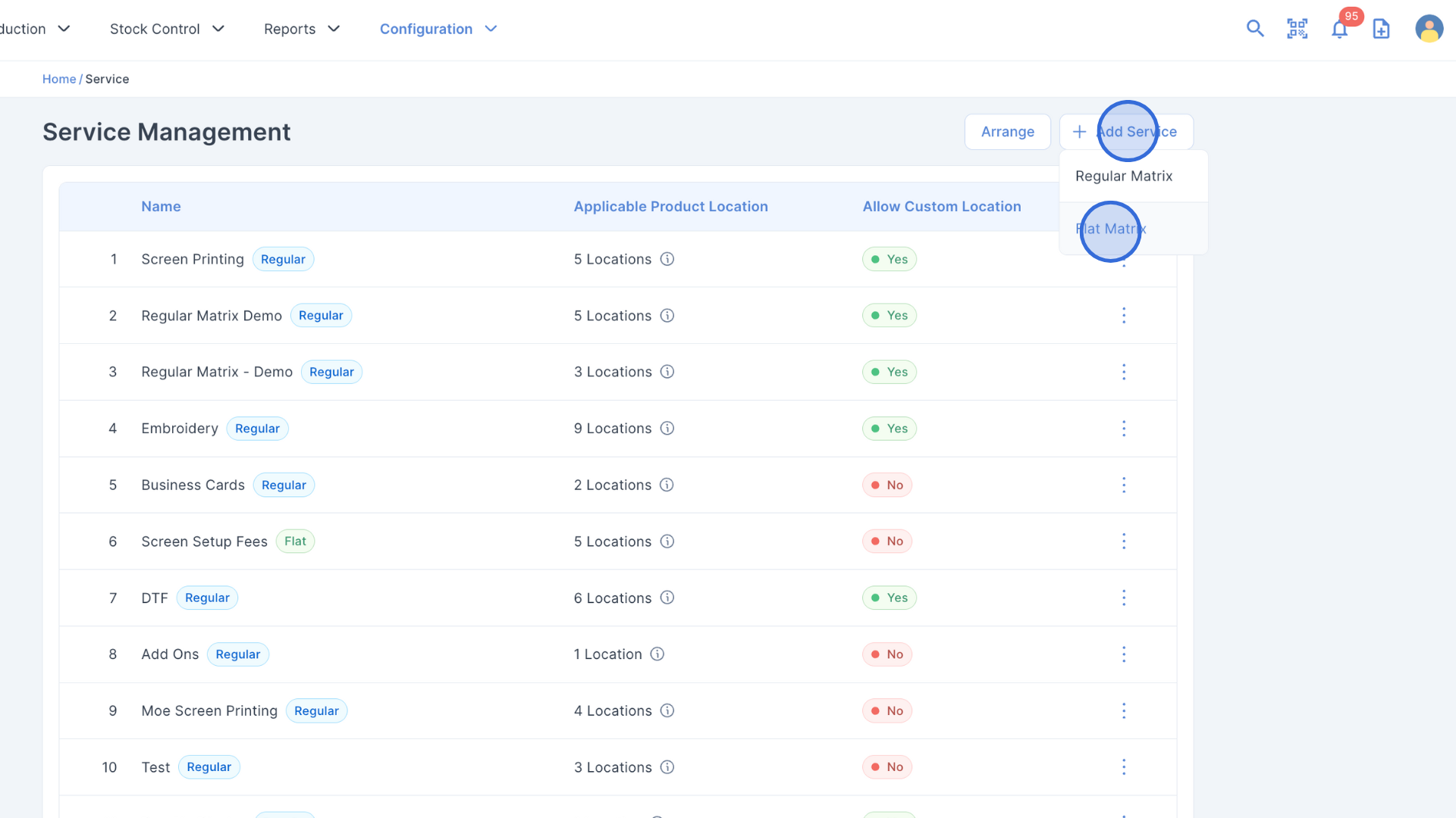 2. Click + Service > Flat Matrix.