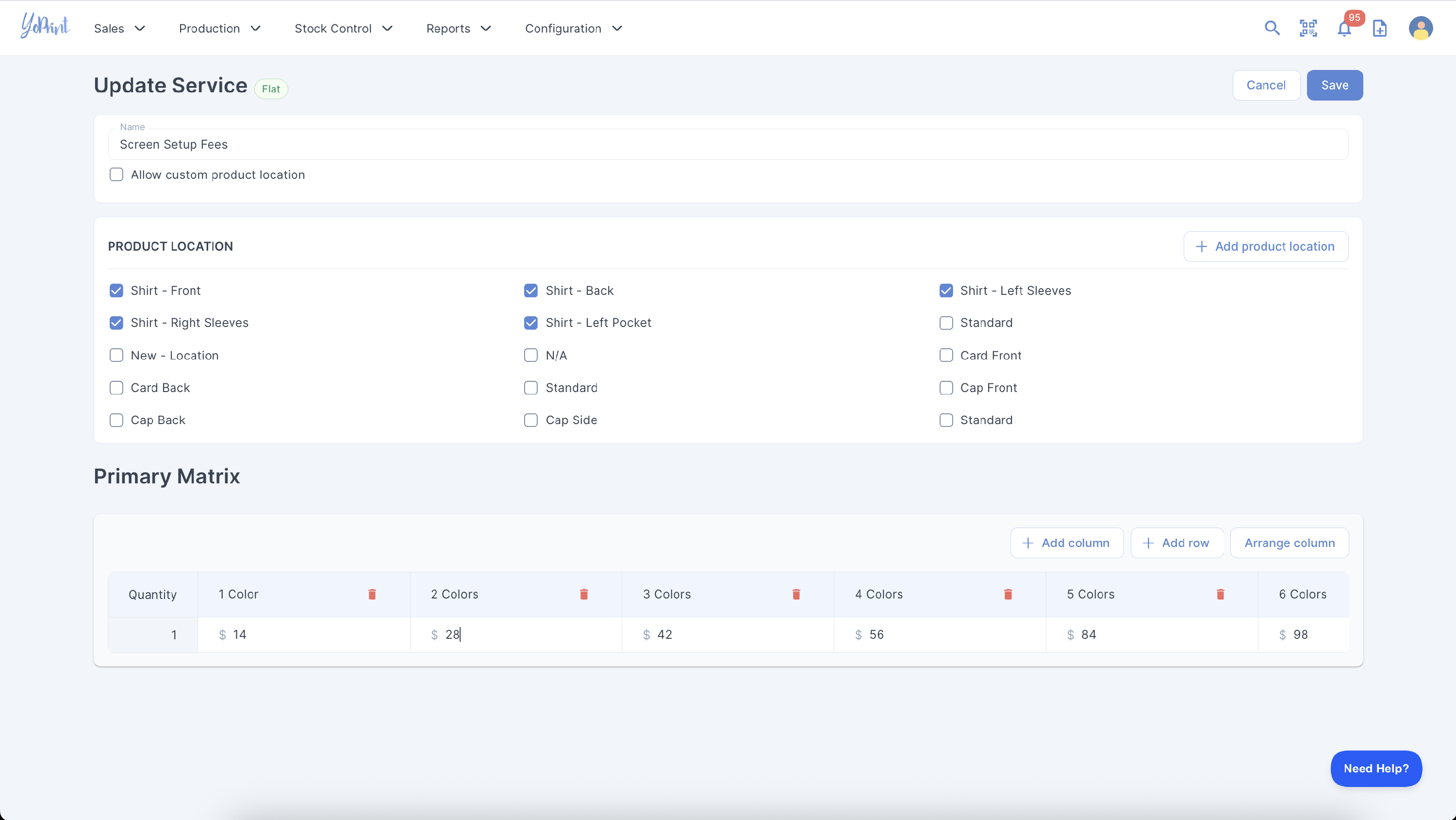 Option 2: Add in the pricing matrix
