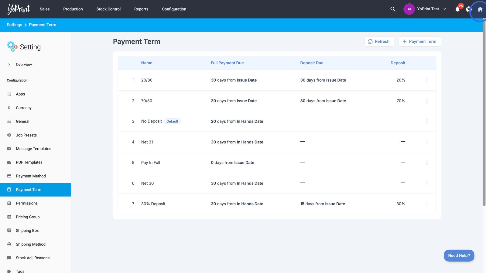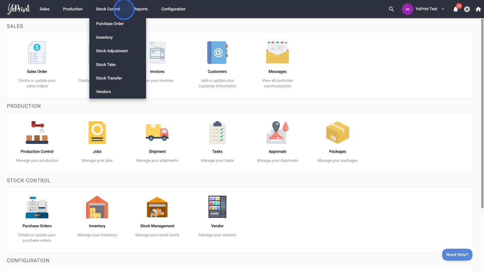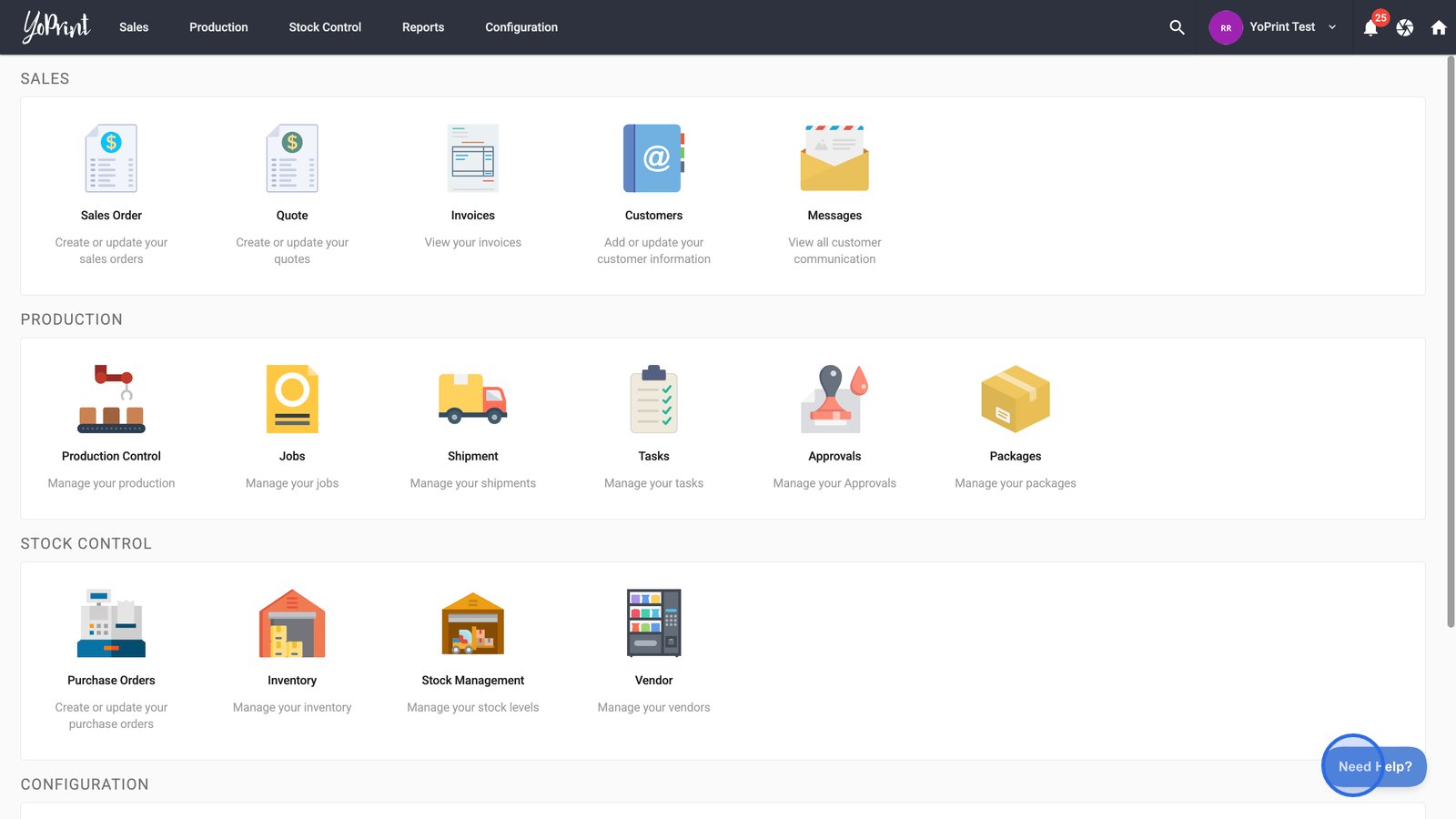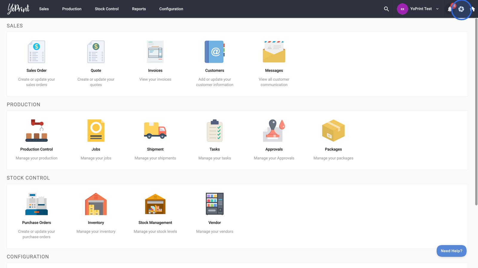 The YoPrint dashboard serves as your central hub for navigating key areas of the platform. From sales and production tracking to inventory, reports, and account settings, the dashboard provides quick access to your tools, helping you manage your business efficiently.