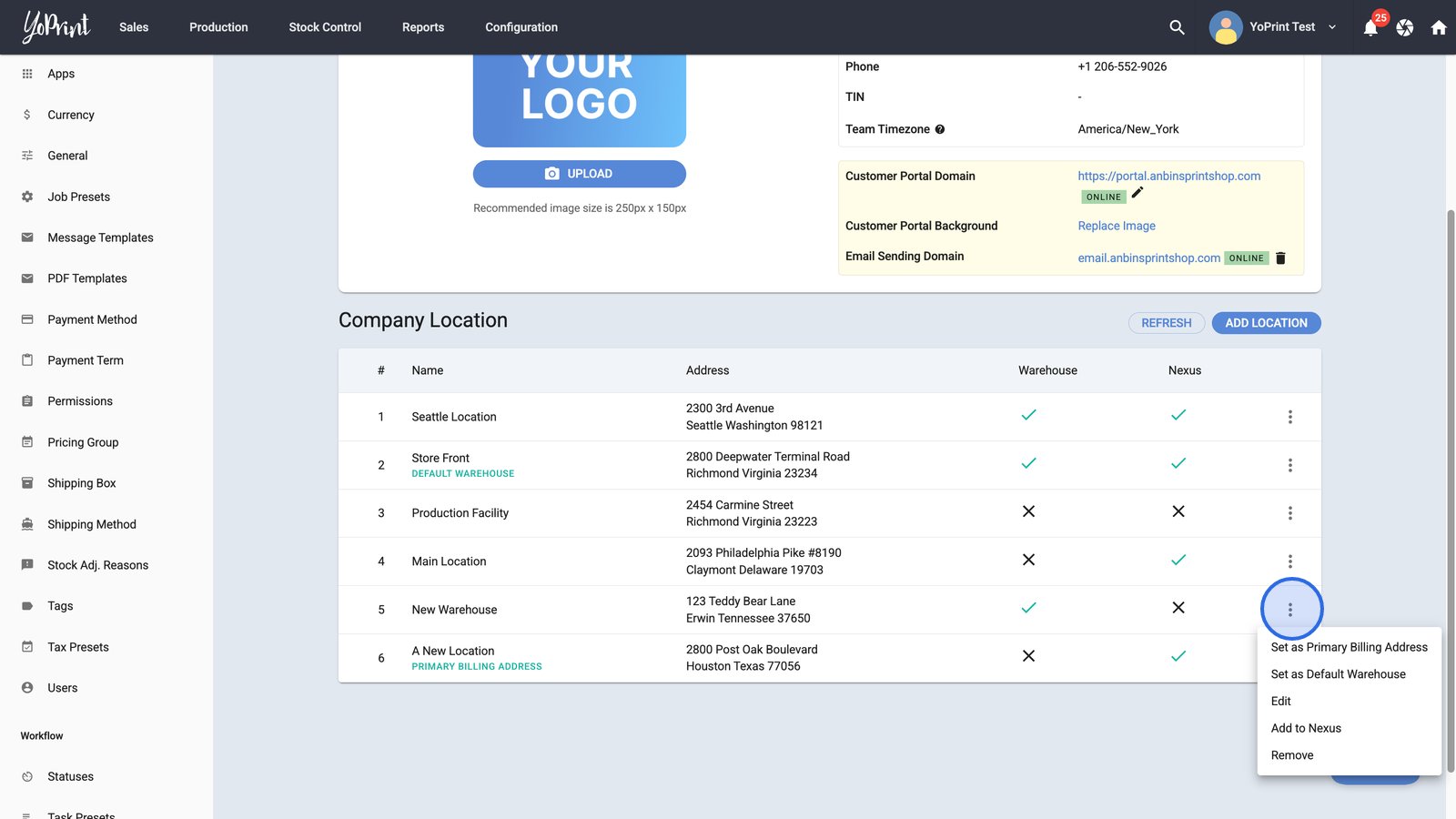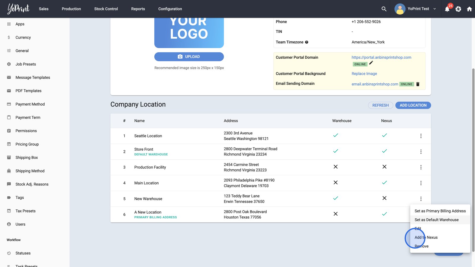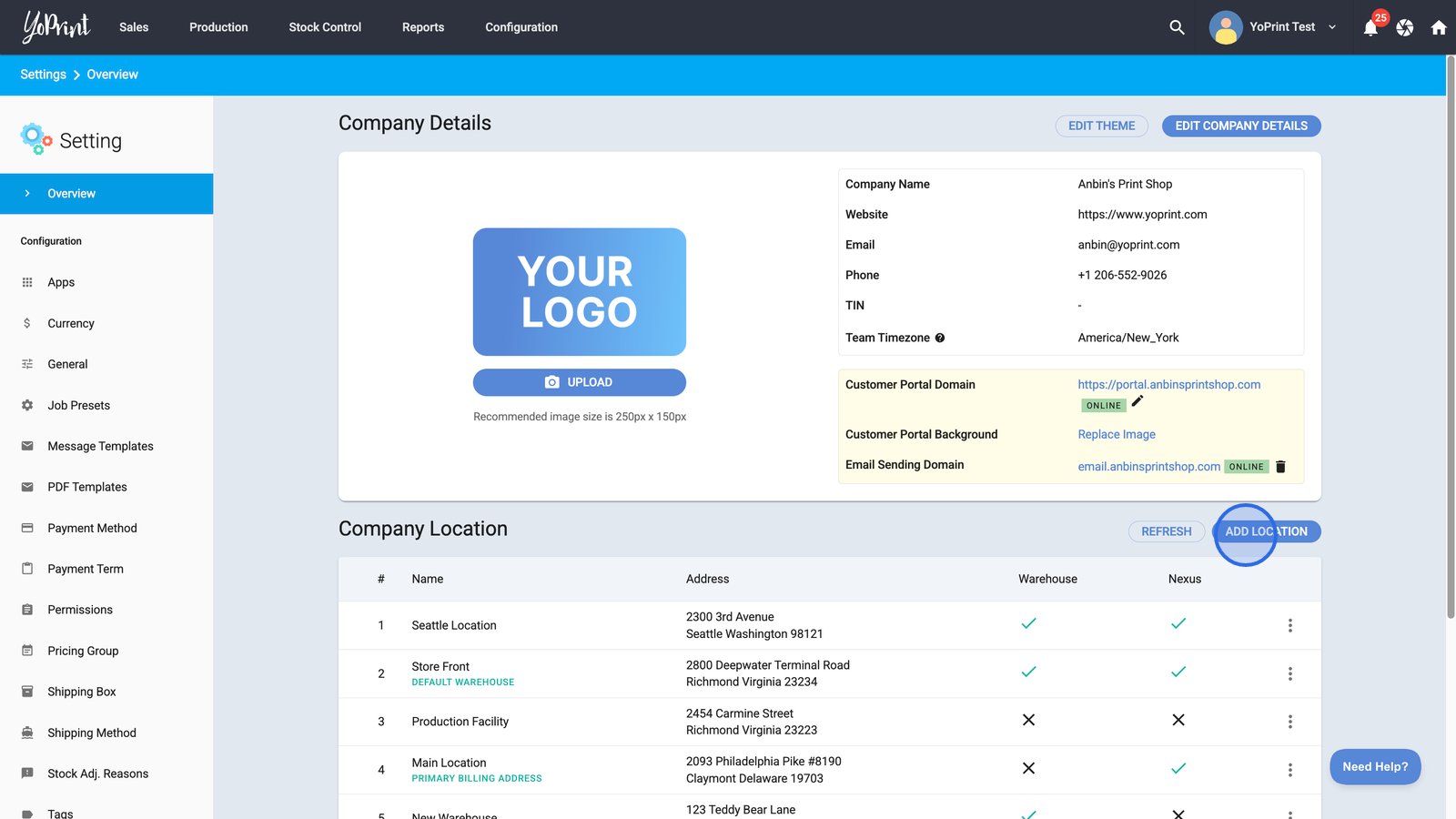 - To take advantage of YoPrint's Stock Management and Smart Sales Tax systems, we recommend adding all your locations.
