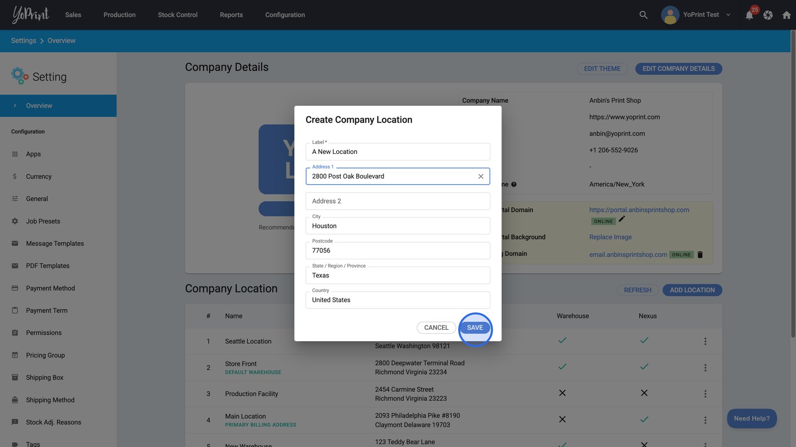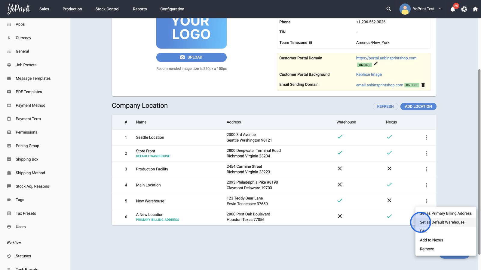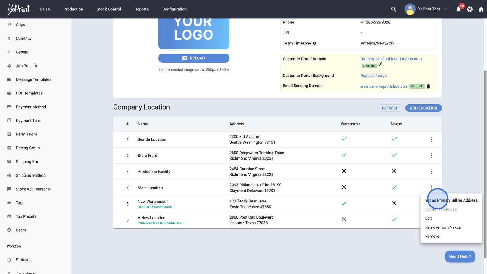- To take advantage of YoPrint's Stock Management and Smart Sales Tax systems, we recommend adding all your locations.