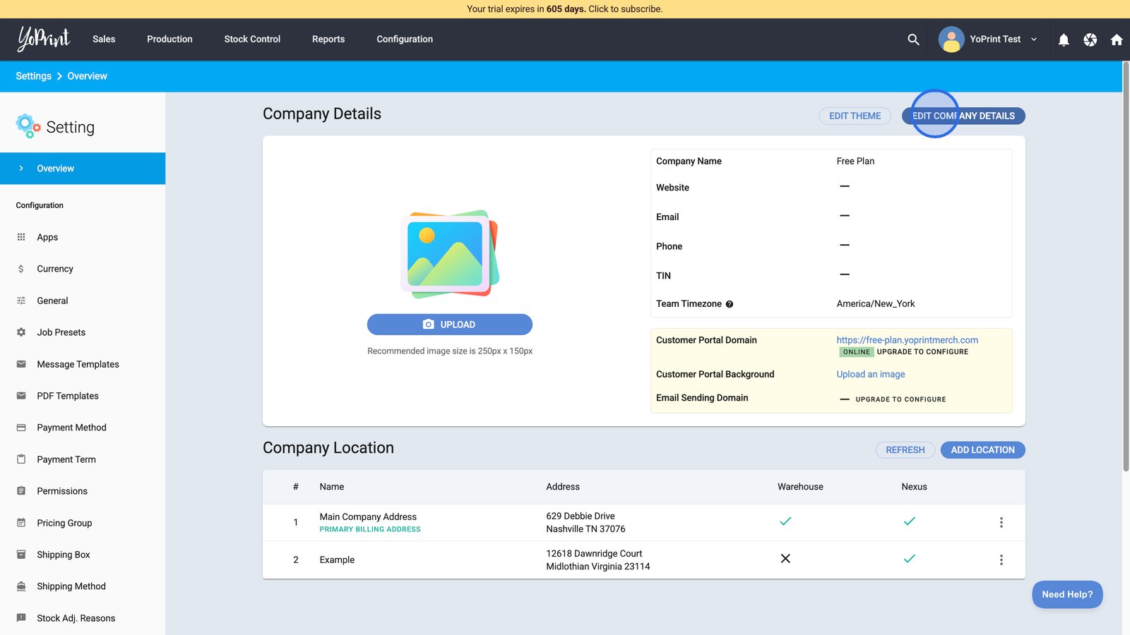 Learn how to set up your company's information and locations in YoPrint with this step-by-step guide. Update details, add a logo, and customize brand colors to align your business profile with your brand.