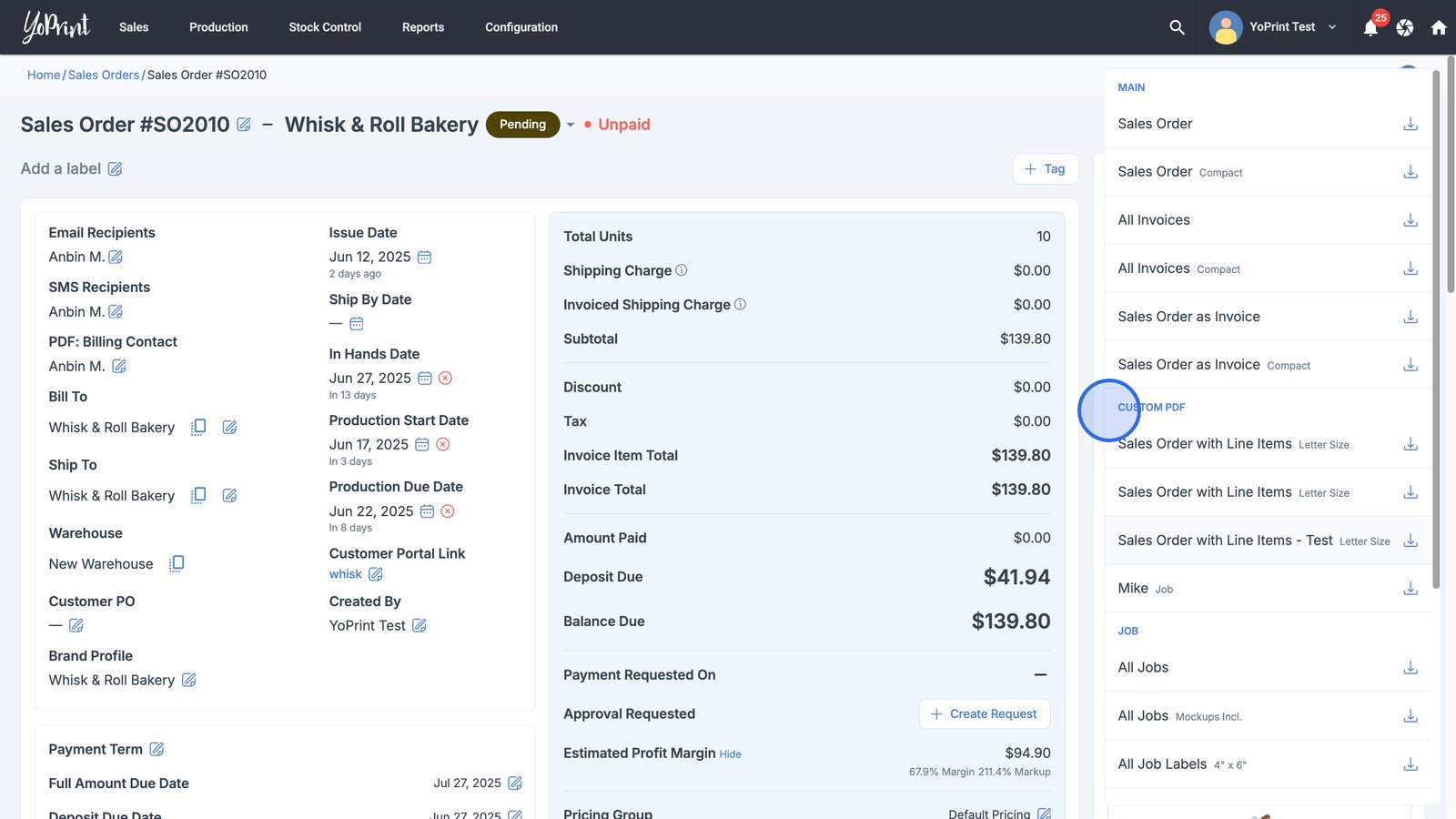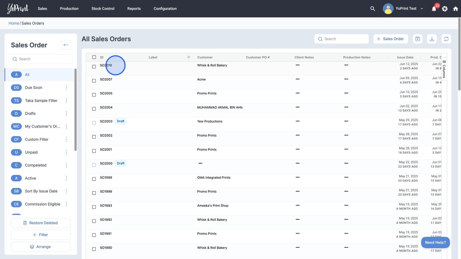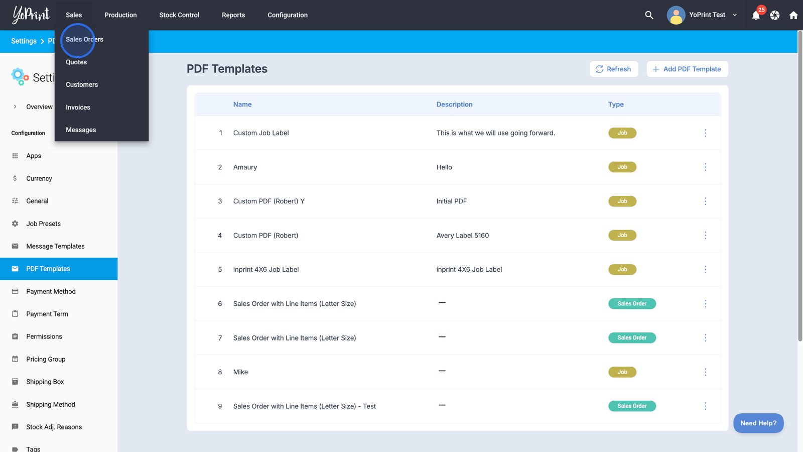 - To use the custom PDF we just created, select Sales Orders in the Sales tab.