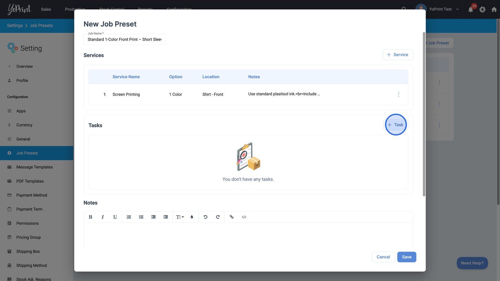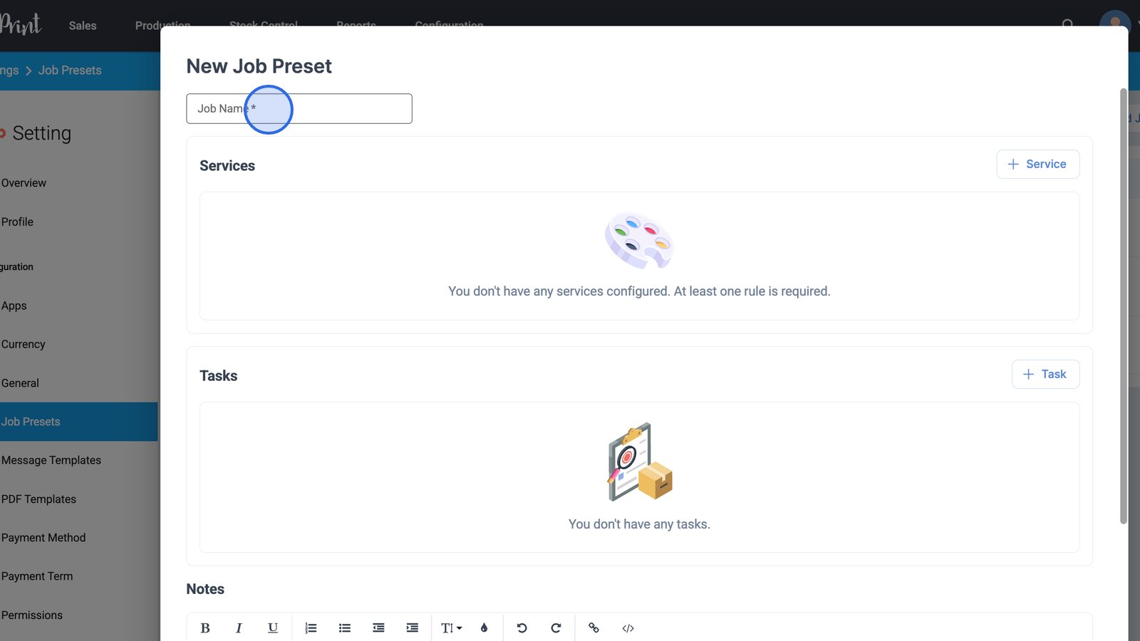 Job Presets make it easy to set up complex, repeatable jobs in just one click. You can preconfigure commonly used services along with their related tasks, so every time you create a job from a preset, it’s ready to go. Don’t worry—you can still edit the job as needed without changing the original preset.