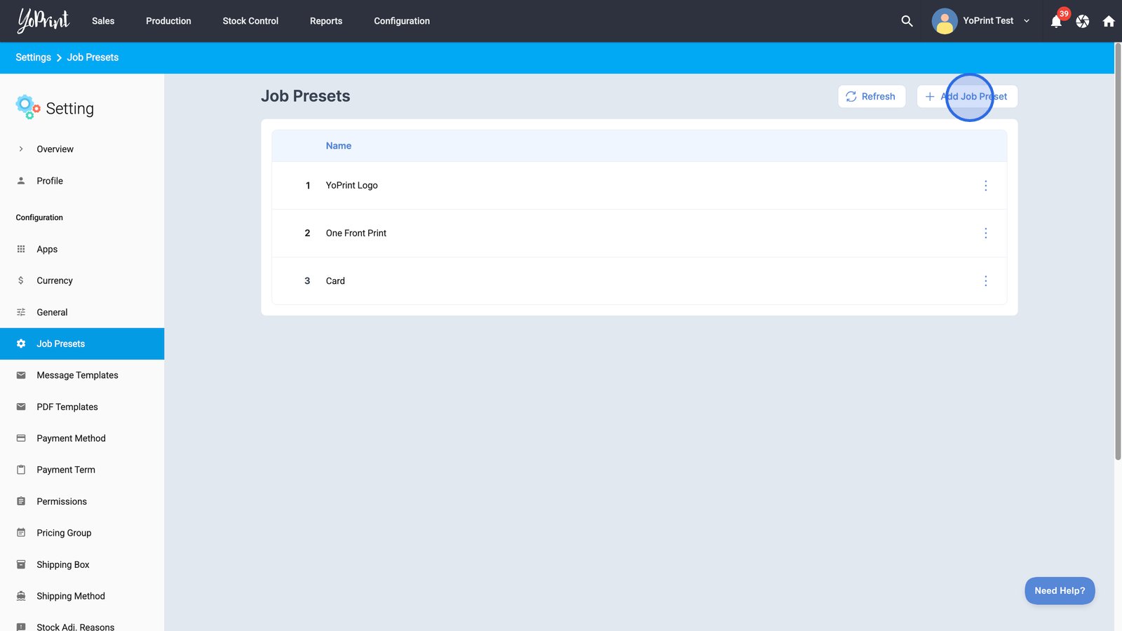 - Select Job Presets from the sidebar to manage or create reusable job templates for your workflow.